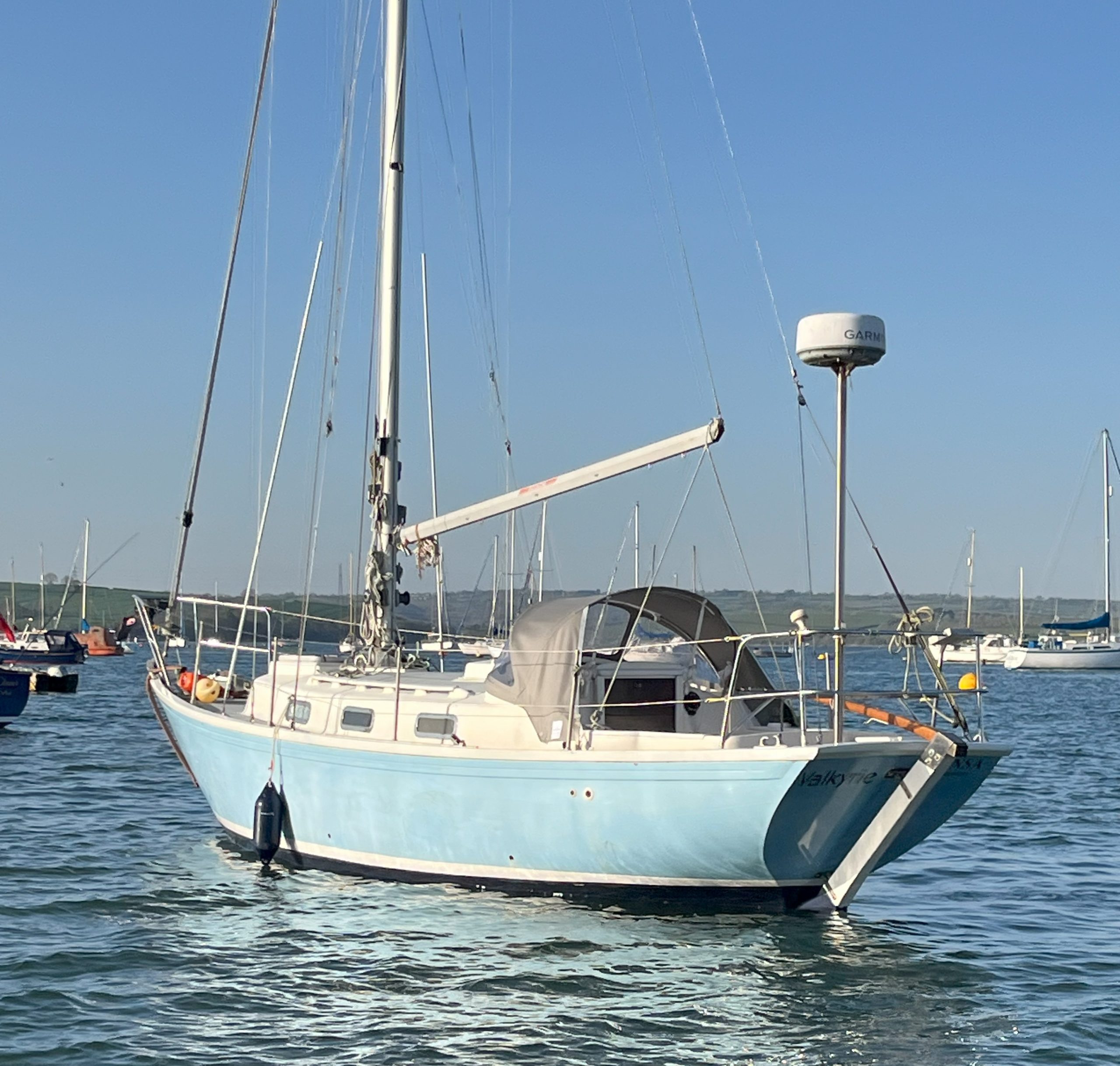 Temporary mooring may be available between purchase and delivery trip, either on her current mooring or on a visitor's mooring through the sailing club. Extensive marina berths are available around Plymouth Sound.