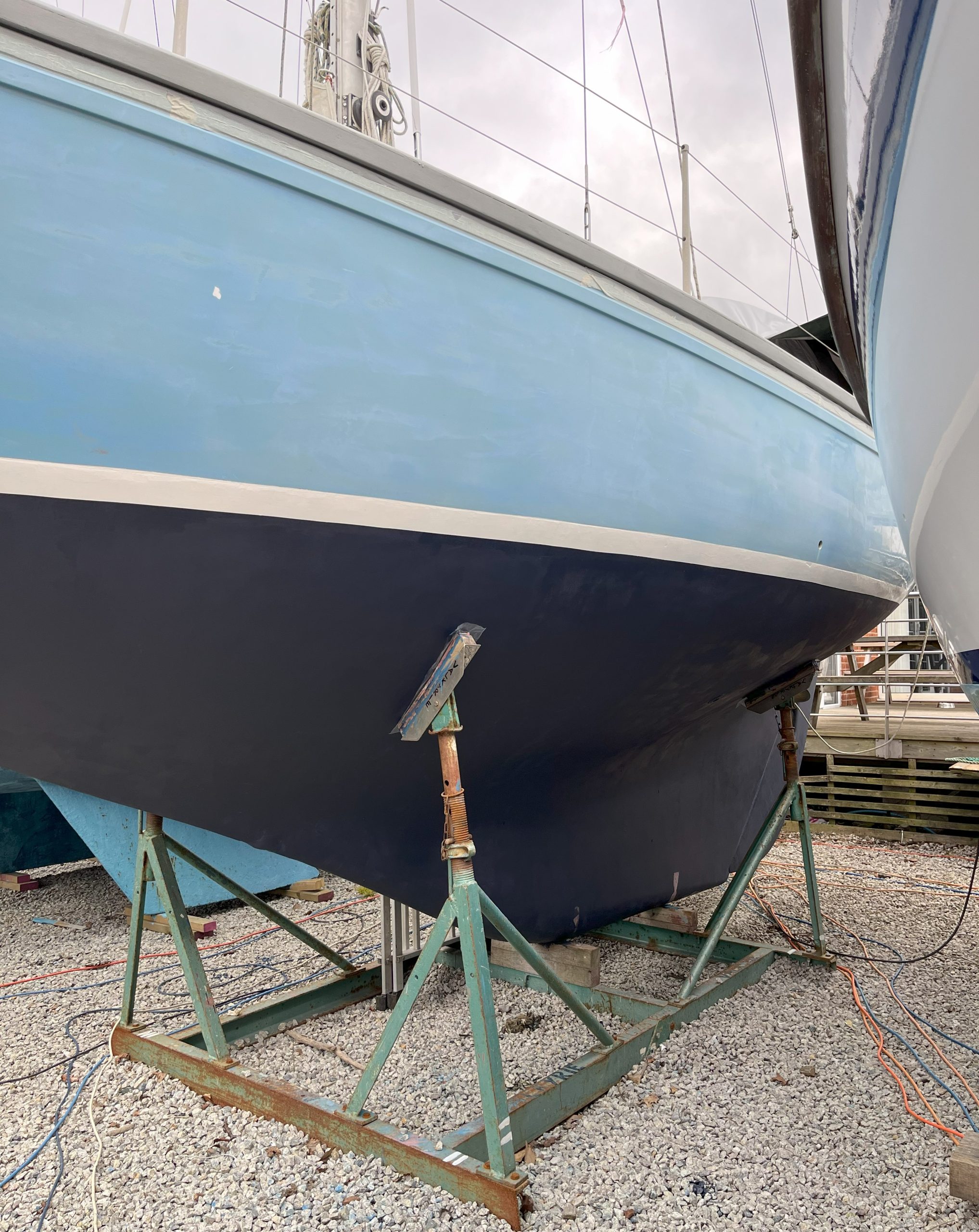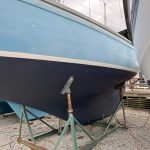 The hull is anti-fouled using semi-commercial Jotun Cu-Pro, which has provided excellent protection over the full sailing season. Paintwork is Jotun commercial Topcoat over Jotun Vinyguard primer.